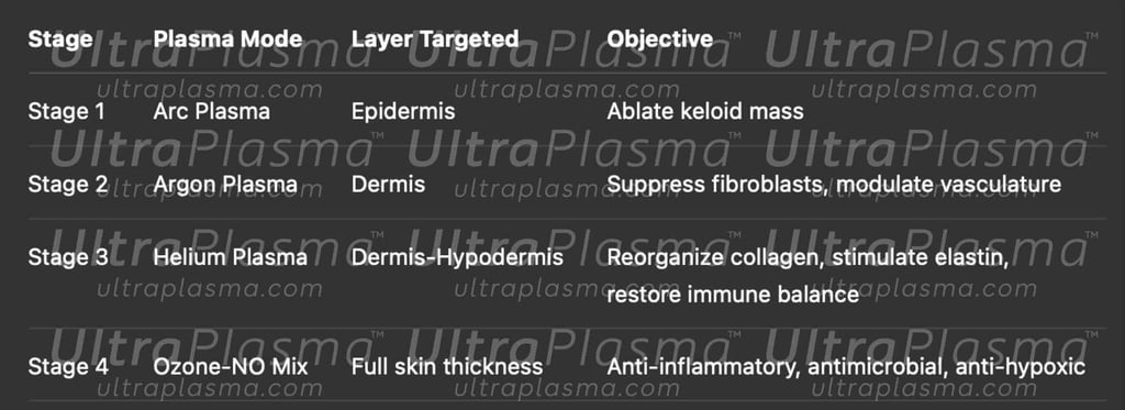 UltraPlasma™-based treatments provide a paradigm shift in keloid therapy by addressing both structural and cellular dysregulations. Unlike thermal ablation or corticosteroids alone, UltraPlasma™ offers layer-specific tuning, minimizing side effects while promoting long-term scar modulation.